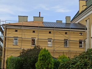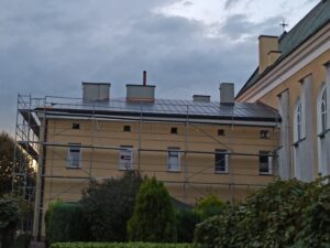 Prace remontowe przy dachu trwają, aczkolwiek pogoda płata figle i deszcz wymusza przerwy. Mamy nadzieję, że do końca tego roku uda się zakończyć wymianę pokrycia dachowego i będziemy mogły spać spokojnie…